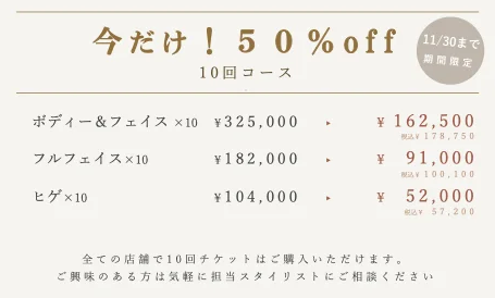 なんと、タイミングよく特別限定メニュー10回コース50%OFFがスタート。